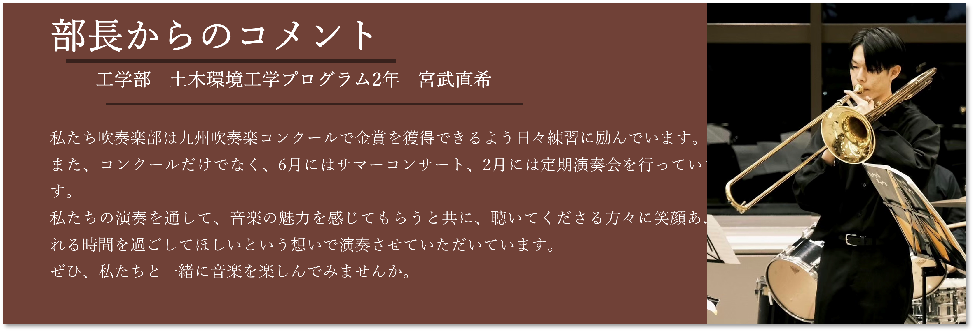 私たち吹奏楽部の年間を通しての活動をご紹介します。